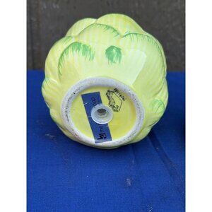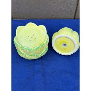 Vintage Haldon Group Artichoke Ceramic Salt Pepper Shaker Set Green Yellow Glaze