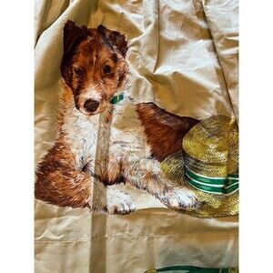 Vintage Half Apron Border Collie Puppy Dog with Sun Hat Tan Ties in Back