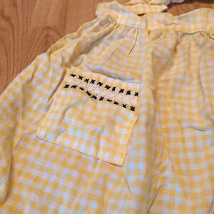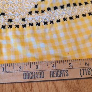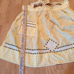 Embrace the charm of yesteryear with this delightful Vintage Half Apron, a perfect addition to any kitchen ensemble or collector's treasure trove. Adorned in a cheerful yellow and white gingham check pattern, this apron exudes a cottagecore vibe that's both timeless and endearing. The retro style is complemented by a practical cross-stitch design and a convenient pocket, making it as functional as it is fashionable.