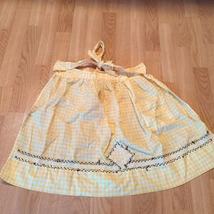 Vintage Half Apron Yellow White Gingham Check Pocket Hostess Apron Cottagecore