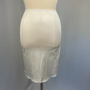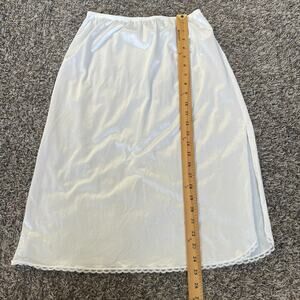 Vintage Half Slip Skirt Size Large White Ivory Solid Satin Nylon Side Slit