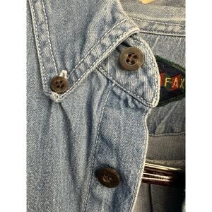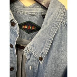 Made of high-quality cotton denim material, this shirt is both durable and comfortable. Its XL size and regular fit make it suitable for most body types. Whether you're going for a vintage look or just want to add a touch of nostalgia to your wardrobe, this Halifax shirt is a great choice.