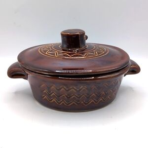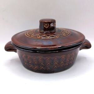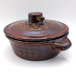 Vintage Hall Art Pottery Brown Ceramic Stoneware Handled & Lidded Bowl Bean Pot