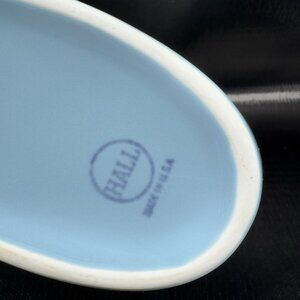 Vintage Hall Pottery Nora Pitcher Carafe Jug Pale Blue White Inside Stoneware