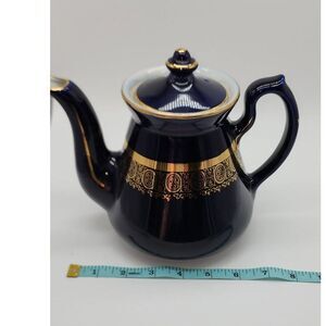 Vintage Hall Royal Blue & Gold Teapot 063X 6 Cup. Excellent condition. Beautiful deep royal blue with gold etching. Measure ~7" tall x 8" across the widest part. Teapot or coffee pot.