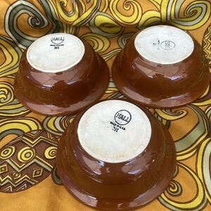 Elevate your vintage kitchen collection with this set of 3 Hall stoneware bowls in a rich brown glaze with clean white interiors. Classic mid-century design meets everyday function—perfect for cereal, soup, dessert, or display.
