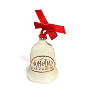 Vintage Hallmark 1983 Ceramic Mom & Dad Christmas Bell Ornament With Red Ribbon