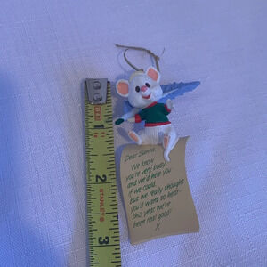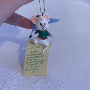Vintage Hallmark 3” Mouse with Quill Pen and Dear Santa Letter Holiday Ornament