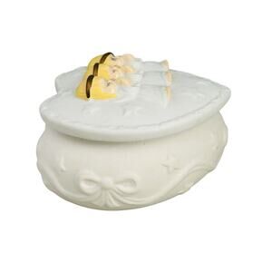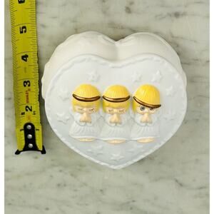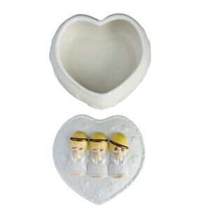 Vintage Hallmark 3D Three Little Angels Heart Shaped Ceramic Trinket Box Lidded