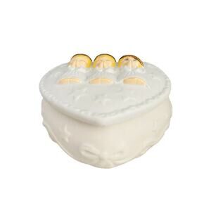 Great condition - no chips or cracks. Great Valentine’s Day gift. This is a Vintage Hallmark 3D Three Little Angels Heart Shaped Ceramic Trinket Box with a lid. The trinket box features a colorful design of three little angels in a heart shape. It is made of ceramic and porcelain, originating from China. It serves as a decorative collectible item, perfect for storing small keepsakes or jewelry.