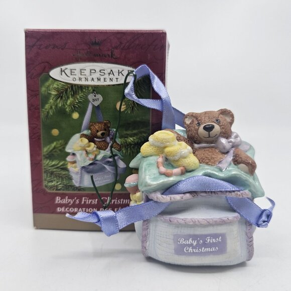 Vintage Hallmark Babys First Christmas Teddy Bear Tree Ornament Porcelain 2001