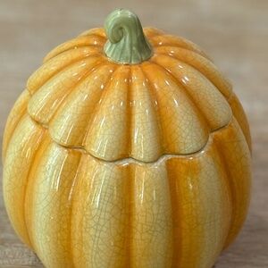 Happy Summerween! From the early Y2K era of Hallmark, this vintage glazed crackled ceramic pumpkin candle holder is ideal for cozy fall and Halloween vibes~