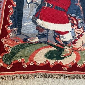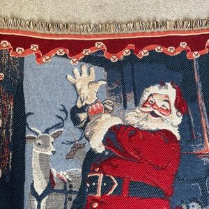 Vintage Hallmark Goodwin Weavers Santa tapestry fringe throw blanket 48" x 60"