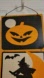 Halloween Tin metal Trio Hanging Decor featuring Jack O Lantern pumpkin, Flying Witch and Moon and Bats