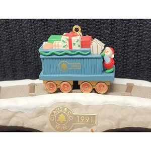 Vintage Hallmark Keepsake 1991 Train Tressel And 3 Trains Christmas Ornaments in good used condition in original box but not original packaging. Would make a great addition to any Christmas collection. Measurements in pics. Comes as pictured.