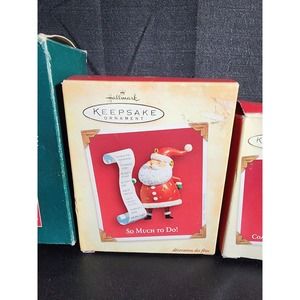 Add some vintage flair to your Christmas tree with this Hallmark Keepsake ornament lot. The set includes 5 ornaments featuring 2 Santas, a coach award trophy, a teacher, and panda. These ornaments were all made between 1990 and 2004. Don't miss out on the opportunity to add these unique ornaments to your collection.