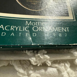 This vintage Hallmark Keepsake Ornament from 1987 features the word "Mother" in acrylic material with a love-themed design. It is part of the Ornaments collection and is a perfect gift for any recipient who holds a special place in their heart for their mother. The ornament is in great condition and is sure to add a touch of nostalgia to any holiday decor. Own a piece of history with this charming ornament from Hallmark.