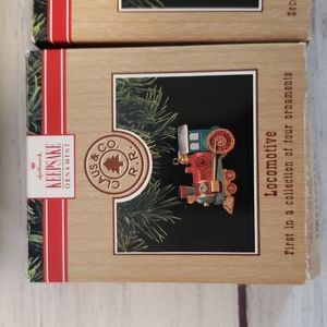 Vintage Hallmark Keepsake Train Ornaments With Display Stand New