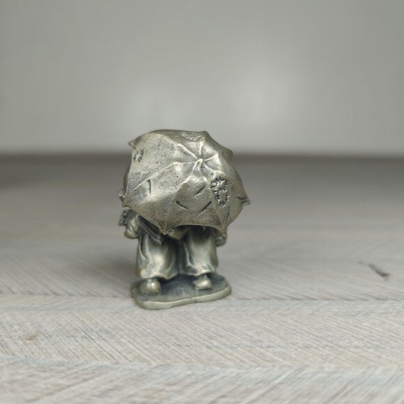 Vintage Hallmark Little Gallery Fine Pewter Miniature Figurine Kids Umbrella