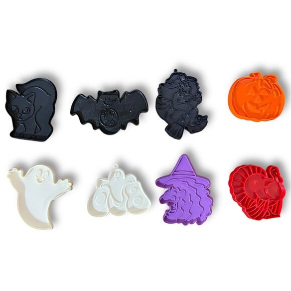 Vintage Hallmark Plastic Halloween Cookie Cutters Witch Ghost Bat Cat Pumpkin