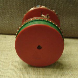 Vintage Hallmark Santa with reindeer carousel music box from 1979. Plastic. Holiday colors. Santa in sleigh with 4 reindeer turn as music plays. Plays "Santa Clause is Coming to Town". Marked on bottom. 5 3/4 inches high, 3 5/8 inches bottom diameter. Good condition, no chips or cracks. Has some wear from age & use. Great for Christmas decor or a music box collection.