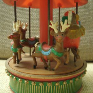 tags: christmas, holiday, yule, hallmark, santa, reindeer, carousel, plastic, music, musical, music box, collectible, decor, display