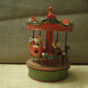 Vintage Hallmark Santa & Reindeer Carousel Music Box