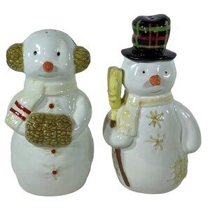 Add a touch of festive charm to your dining table with this snowman-themed salt and pepper shaker set. Crafted from durable ceramic, these vintage shakers feature delightful details including earmuffs, scarves, and a top hat, making them an ideal addition to your holiday decor collection.