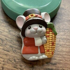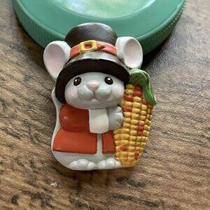 Vintage Hallmark Thanksgiving Pin Pilgrim Mouse Molded Plastic Novelty Brooch