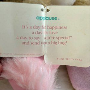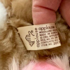 This rare set of 3 vintage Applause bunny rabbits is a must-have for any collector or fan of plush toys. Each bunny comes with cute pink slippers and is made with high-quality materials that ensure durability and long-lasting playtime. The bunnies are from 1989 and are recommended for ages 2 and up. The bunnies are made in Korea, Republic of and belong to the Applause character family. Like new with tags still intact. No stains or blemishes.