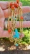Beautiful Accessocraft N.Y.C. necklace features a mix of long tubular turquoise blue glass beads & round coral red glass beads on a gold tone bar link chain. The necklace is an extremely long that can be worn looped around the neck multiple times or as a single strand. Has a round spring closure.
