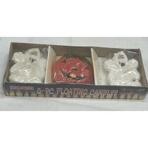 Vintage Halloween 3 Piece Floating Orange Jack O Lantern Pumpkin Candles RARE. Measurements photographed. See pictures, please. Ships quickly