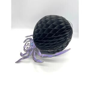 Vintage Halloween Amscan Honeycomb Spider Paper Decoration Black Purple 12"x12"