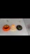 Three vintage Halloween plastic blinking lights from Easter Unlimited, a pumpkin, a ghost, and a black cat. All lights are in working order. Battery compartments on back require two AA batteries (not included). There is a thin string and a suction cup attached to each light. There are some smudges on the back of the lights. They are all 5-6 inches tall.