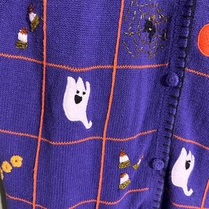 Vintage Halloween Cardigan Vest Pumpkins Ghost Size 3X Unisex Purple