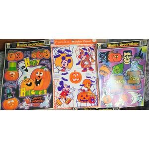 Vintage Halloween Color Clings Set Of 5 Sheets Including Mickey Window Stickers