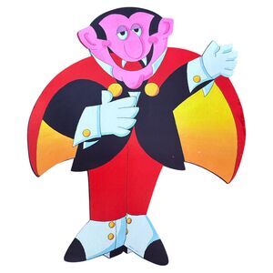 This charming cartoon-style Dracula is here to give your Halloween display a playful twist! With a bold red, yellow, and black cape and his fangy little grin, hes more sweet than spooky ️