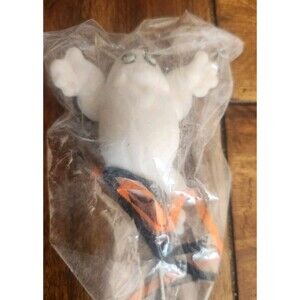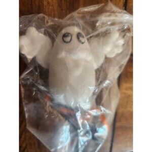 Vintage Halloween Floral Pick Ghost Face Blow Mold Flocked White Puff Eyes