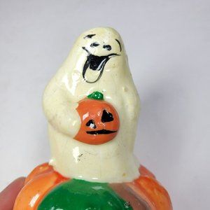 Vintage Halloween Ghost in Pumpkin Wax Candle Figure Sculpture 5x3"