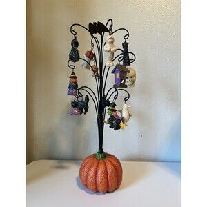 Vintage Halloween Heavy Resin Wire Tree Jackolantern Black Cat Glitter Ornaments