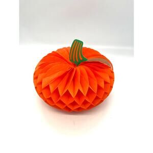 Vintage Halloween Thanksgiving Fall Autumn Honeycomb Pumpkin Paper Decoration 5" Tall