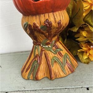 Vintage Halloween Jack O’Lantern Haystack Scarecrow Ceramic Light Cover REPAIRED