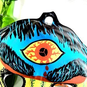Vintage Halloween Mask Cyclops Monster Third Eye Scary Ghoul Molded Plastic GLOW