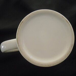 Microwave safe, about 10 ounces. This is the good kind of ceramic that doesn't get really hot when you put it in the microwave. Check the pictures, it has no flaws beyond general use, that means no chips, no cracks, no stains.