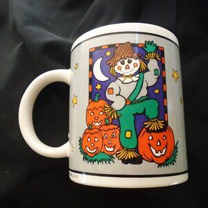 Vintage Halloween Mug, Dated 1995-Scarecrow & Jack O Lantern Pumpkins