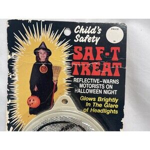 Vtg Halloween Childs Saf-T Treat Reflective Witch Badge RARE. Measurements photographed. See pictures, please. Ships quickly