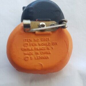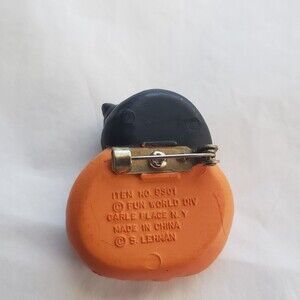 Vintage Halloween Pin Black Cat on Pumpkin Resin Safety Pin Back Costume Jewelry