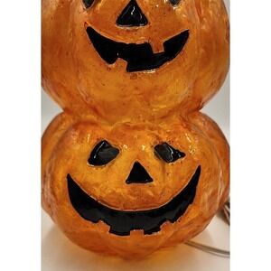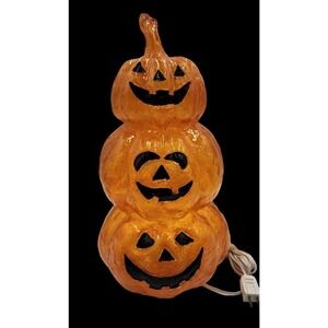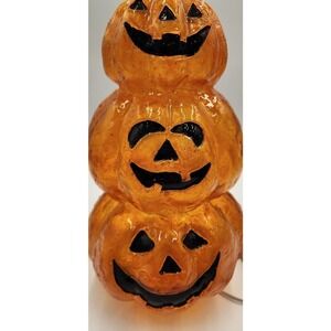Vintage Halloween Pumpkin Stack Blow Mold Resin Plastics 15” Tall Lighted
