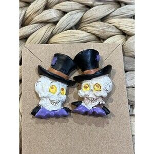 These Vintage Halloween Resin Skeleton Earrings feature a unique design with top hats and bat bow ties, perfect for those who love Gothic and Punk styles. Made from resin and surgical steel, these multicolor earrings are nickel-free and safe for sensitive ears. The butterfly closure adds a touch of elegance to these stud earrings, making them a versatile accessory for various occasions like Mother's Day, Christmas, birthdays, and anniversaries. Made in China, these vintage earrings are sure to add a touch of whimsy and edginess to any outfit.