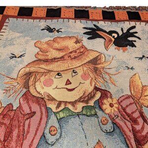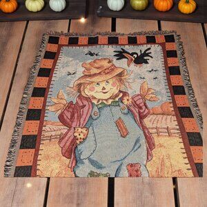 Vintage Halloween Scarecrow The Edith Collection Tapestry Throw Blanket 53 x 70"